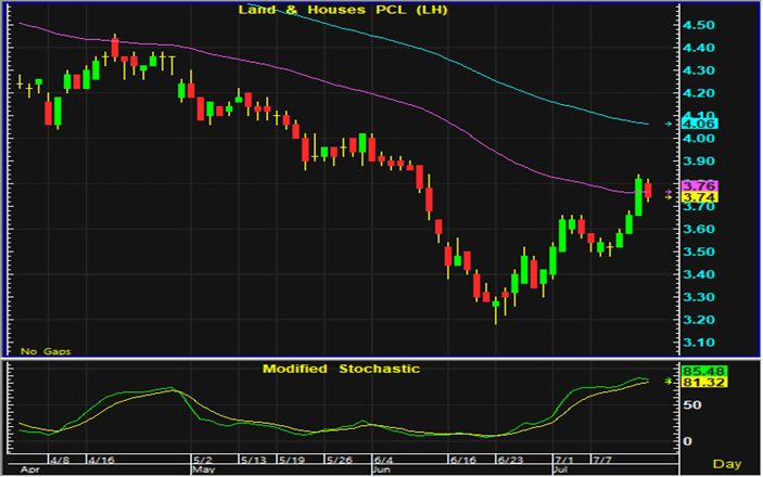 ราคาหุ้น LH วานนี้เริ่มอ่อนตัวลงหลังปรับตัวขึ้นต่อเนื่องติดต่อกันหลายวัน คาดว่าเป็นแรงขายทำกำไรในระยะสั้นที่มีกลับออกมา หากยังไม่กลับลงไปต่ำกว่าแนวรับบริเวณ 3.68-3.7 บาท แนะนำเปิดสถานะซื้อ และมีจุดขายตัดขาดทุนอยู่ที่ 3.64 บาท
