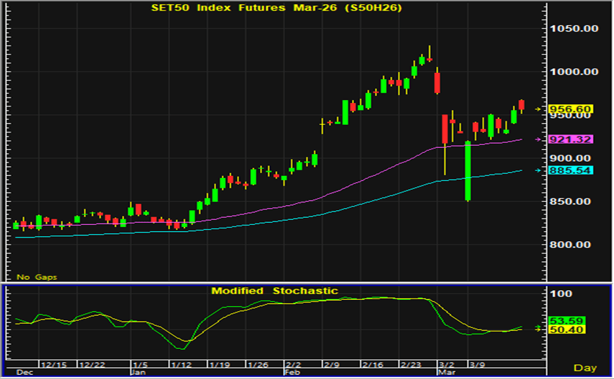 ตลาดหุ้นไทยดีดตัวช่วงเปิดตลาด ก่อนที่จะมีแรงขายกลับออกมาในระหว่างวัน กดดันดัชนีปิดตลาดอ่อนตัวลดช่วงบวกลง นักลงทุนใช้ความระมัดระวังในการลงทุนเพื่อติดตามการประชุมของธนาคารกลางสหรัฐ ซึ่งค่ำที่ผ่านมามีมติคงดอกเบี้ยที่ร้อยละ 3.5-3.75 สถานการณ์เงินเฟ้อจากการเร่งตัวของราคาพลังงานเป็นประเด็นที่ต้องติดตาม หากราคาพลังงานทรงตัวในระดับสูง ความกังวลเรื่องการใช้นโยบายการเงินแบบเข้มงวดก็จะกลับมาเป็นปัจจัยกดดันการลงทุน นอกจากประเด็นดังกล่าวแล้ว ในวันนี้จะมีการประชุมสภาผู้แทนราษฎรเพื่อลงมติลือกนายกรัฐมนตรี หากรัฐบาลชุดใหม่ได้รับเสียงสนับสนุนและมีเสถียรภาพเพียงพอที่จะบริหารประเทศ ก็จะเป็นปัจจัยบวกต่อการลงทุนในตลาดหุ้นไทยต่อไป การเก็งกำไรในสัญญาเดือน H แนะนำเปิดสถานะซื้อใกล้แนวรับบริเวณ 949-950 จุด และมีจุดขายตัดขาดทุนอยู่ที่ 945 จุด ส่วนแนวต้านสำหรับเก็งกำไรฝั่งขายในระหว่างวันอยู่ที่บริเวณ 965-966 จุด และมีจุดปิดสถานะตัดขาดทุนอยู่ที่ 970 จุด