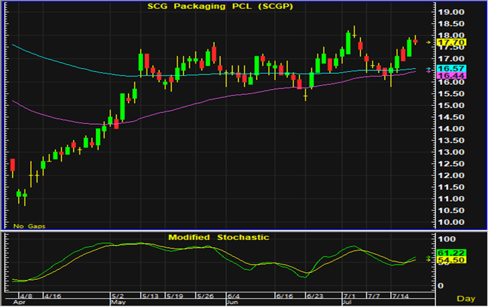 ราคาหุ้น SCGP อ่อนตัวลงในการซื้อขายวันศุกร์ ขณะที่เครื่องมือทางเทคนิคยังมีสัญญาณฟื้นตัว การเก็งกำไรระยะสั้นแนะนำเปิดสถานะซื้อใกล้แนวรับ 17.3-17.4 บาท และมีจุดขายตัดขาดทุนอยู่ที่ 17 บาท