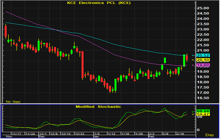 ราคาหุ้น KCE ปรับตัวลงในการซื้อขายวันศุกร์ คาดว่าเป็นแรงขายทำกำไรในระยะสั้นที่มีกลับออกมา หากยังยืนเหนือแนวรับบริเวณ 19.6-19.7 บาท แนะนำเปิดสถานะซื้อเก็งกำไร และมีจุดขายตัดขาดทุนอยู่ที่ 19.3 บาท