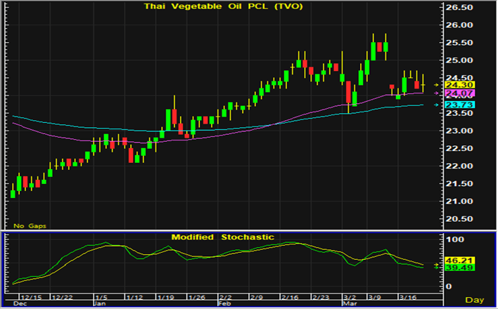 ราคาหุ้น TVO แกว่งตัวแคบและเคลื่อนไหวใกล้แนวรับบริเวณ 23.9-24 บาท หากยังไม่กลับลงไปปิดต่ำกว่าแนวรับนี้ คาดว่าจะมีการดีดตัวทางเทคนิคเกิดขึ้น และแนะนำเปิดสถานะซื้อเก็งกำไร โดยมีจุดขายตัดขาดทุนอยู่ที่บริเวณ 23.5 บาท