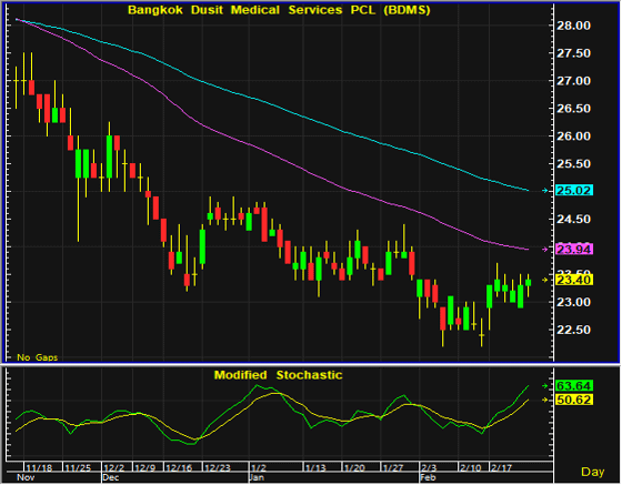 ราคาหุ้น BDMS แกว่งตัวในกรอบแคบในการซื้อขายวานนี้ ขณะที่เครื่องมือทางเทคนิคยังมีสัญญาณฟื้นตัว การเก็งกำไรระยะสั้นแนะนำเปิดสถานะซื้อใกล้แนวรับ 23-23.1 บาท และมีจุดขายตัดขาดทุนอยู่ที่ 22.8 บาท