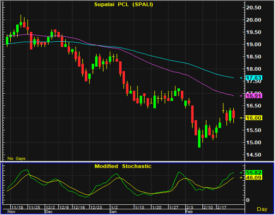 ราคาหุ้น SPALI ปรับตัวลงในการซื้อขายวานนี้ แต่สามารถประคองตัวเหนือจุดต่ำสุดของการซื้อขายวันก่อนหน้า การเคลื่อนไหวทางเทคนิคจึงมีแนวโน้มฟื้นตัว และมีแนวรับสำหรับเปิดสถานะซื้ออยู่ที่ 15.7-15.8 บาท โดยมีจุดขายตัดขาดทุนอยู่ที่ 15.5 บาท