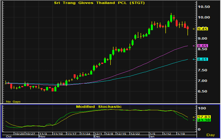 ราคาหุ้น STGT ปรับตัวลงต่อเนื่องในการซื้อขายสัปดาห์ก่อน ในระยะสั้นคาดว่าจะเริ่มมีการดีดตัวทางเทคนิค โดยมีแนวรับสำหรับเปิดสถานะซื้ออยู่ที่บริเวณ 9.1-9.15 บาท และมีจุดขายตัดขาดทุนอยู่ที่ 9 บาท