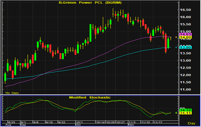 ราคาหุ้น BGRIM แกว่งตัวแคบในการซื้อขายวานนี้ อย่างไรก็ตามสัญญาณซื้อที่เกิดขึ้นช่วงต้นสัปดาห์ การเคลื่อนไหวทางเทคนิคในระยะนี้จึงยังมีแนวโน้มฟื้นตัว และแนะนำเปิดสถานะซื้อใกล้แนวรับ 14.2-14.3 บาท โดยมีจุดขายตัดขาดทุนอยู่ที่ 14 บาท