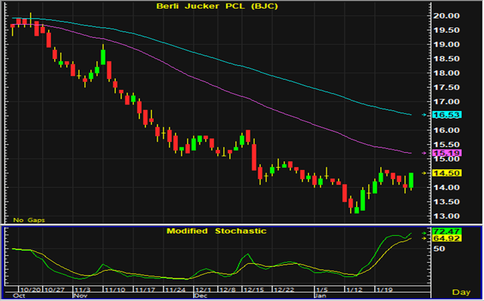 ราคาหุ้น BJC ดีดตัวขึ้นและปิดตลาดที่จุดสูงสุดของวัน การเคลื่อนไหวทางเทคนิคในระยะสั้นยังมีแนวโน้มฟื้นตัว และแนะนำเปิดสถานะซื้อใกล้แนวรับบริเวณ 14.2-14.3 บาท โดยมีจุดขายตัดขาดทุนอยู่ที่ 14 บาท