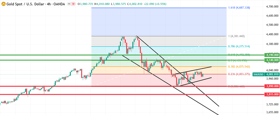 ปธน.ทรัมป์มีความผิด และ ภาวะชัตดาวน์สิ้นสุดลง อาจทำให้ทองคำปรับตัวลงทดสอบแนวรับสำคัญที่ 3,890 และ 3,815 ดอลลาร์ ซึ่งอาจกระตุ้นให้ตลาดมีการปรับฐานลงอย่างต่อเนื่องได้เช่นกัน