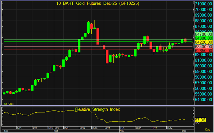 ราคา GF10Z25 เผชิญแรงขายและย่อตัวลงมา จึงแนะนำรอเปิด Short จากแนวต้านที่ระดับ 64,300 บาท โดยมีเป้าหมายทำกำไรที่ระดับ 63,400 บาท และตัดขาดทุนหากราคาทะลุแนวต้านที่ระดับ 64,700 บาทขึ้นไป