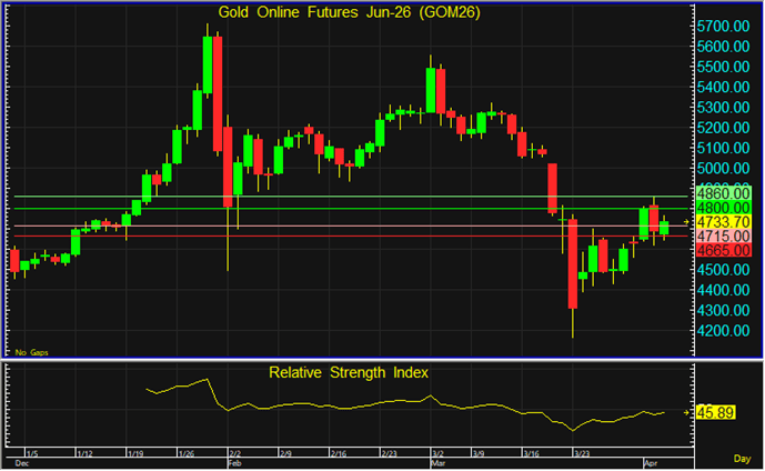 GOM26 อาจเคลื่อนตัวในกรอบแคบๆ เนื่องจากราคาทองโลกปิดในช่วงเทศกาล Good Friday แนะนำทยอยเปิด Long จากระดับ 4,715 ดอลลาร์ โดยมีเป้าหมายทำกำไรที่ระดับ 4,800 ดอลลาร์ และตัดขาดทุนหากราคาทะลุระดับ 4,665 ดอลลาร์ลงไป
