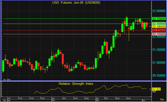 USDM26 แนะนำรอเปิด Short จากระดับ 32.50 บาท โดยมีเป้าหมายทำกำไรที่ระดับ 32.25 บาท และตัดขาดทุนหากราคาทะลุระดับ 32.70 บาทขึ้นไป