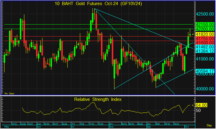 แนวต้าน : 42,000 และ 42,150 บาท
