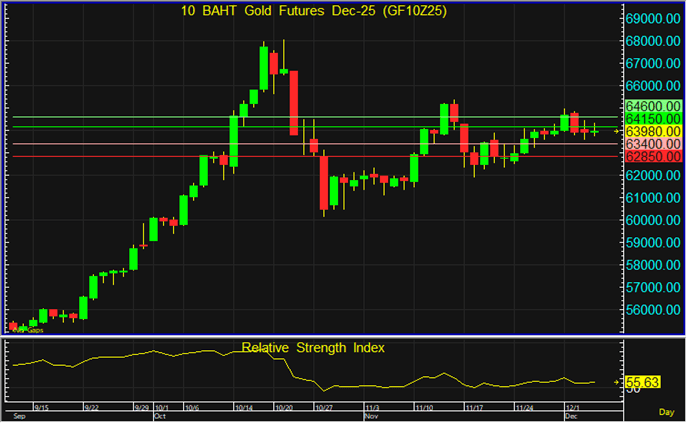 ราคา GF10Z25 ฟื้นตัวขึ้นมา แต่อาจยังติดแนวต้านที่ระดับ 64,150 บาท จึงยังคงแนะนำรอเปิด Short จากแนวต้านดังกล่าว โดยมีเป้าหมายทำกำไรที่ระดับ 63,400 บาท และตัดขาดทุนหากราคาทะลุแนวต้านที่ระดับ 64,600 บาทขึ้นไป