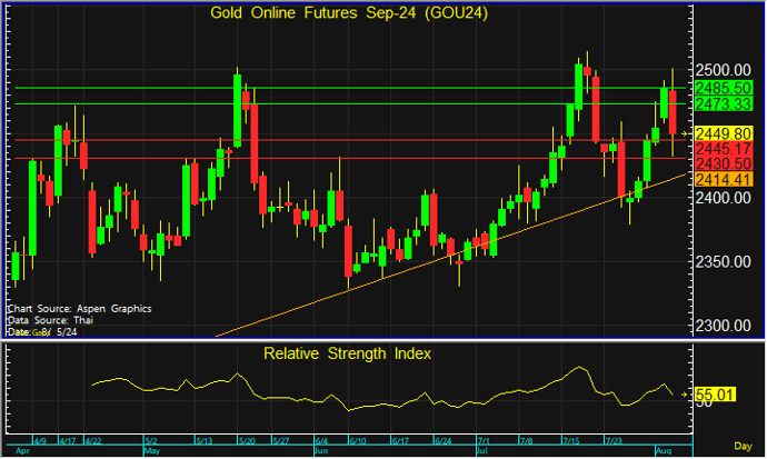 GOU24 แกว่งตัวผันผวนหลังปัจจัยเข้ากระทบ ยังประเมินว่าแนวโน้มยังคงอยู่ในขาขึ้นอยู่ แต่แนะนำใช้กลยุทธ์เชิงรับในการเข้าซื้อสะสม แนะนำรอ Long สัญญา GOU24 ที่ 2,445 $ โดยมีเป้าทำกำไรที่ 2,473 $ และตัดขาดทุนหากหลุดแนวรับสำคัญที่ 2,430 $