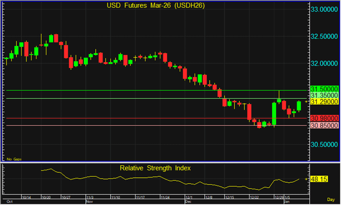 ราคา USDH26 ที่ฟื้นตัวขึ้นมา อาจยังเหลือ Upside อีกเล็กน้อย จึงแนะนำรอเปิด Short จากแนวต้านที่ระดับ 31.35 บาท โดยมีเป้าหมายทำกำไรที่ระดับ 30.98 บาท และตัดขาดทุนหากราคาทะลุแนวต้านที่ระดับ 31.50 บาทขึ้นไป