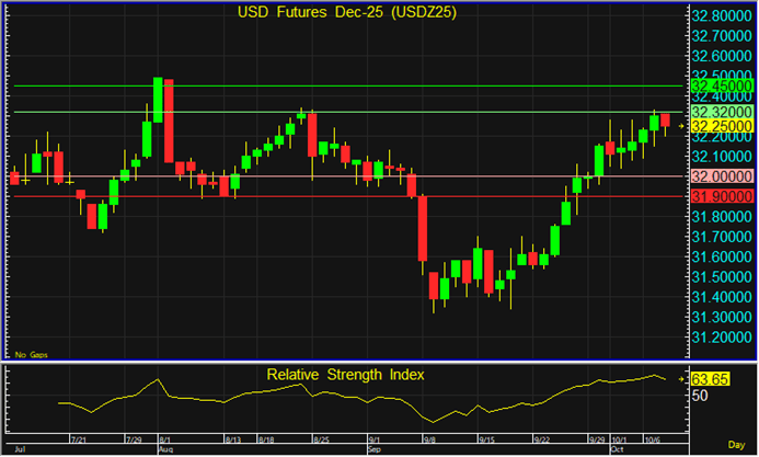 ราคา USDZ25 ขึ้นทดสอบแนวต้าน และเริ่มย่อตัวลง แต่ยังแนะนำรอเปิด Short จากแนวต้านที่ระดับ 32.32 บาท โดยมีเป้าหมายทำกำไรที่ระดับ 32.00 บาท และตัดขาดทุนหากราคาทะลุแนวต้านที่ 32.45 บาทขึ้นไป
