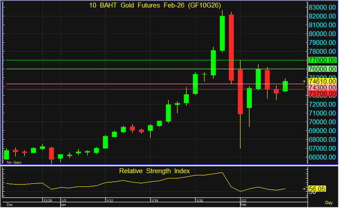 ราคาทองโลกฟื้นตัวขึ้น แต่ประเมินว่าราคาอาจมีการพักฐานสั้นๆ จึงแนะนำรอเปิด Long จากแนวรับที่ 74,300 บาท โดยมีเป้าทำกำไรที่ 76,000 บาท และตัดขาดทุนหากหลุดแนวรับที่ 73,700 บาทลงไป