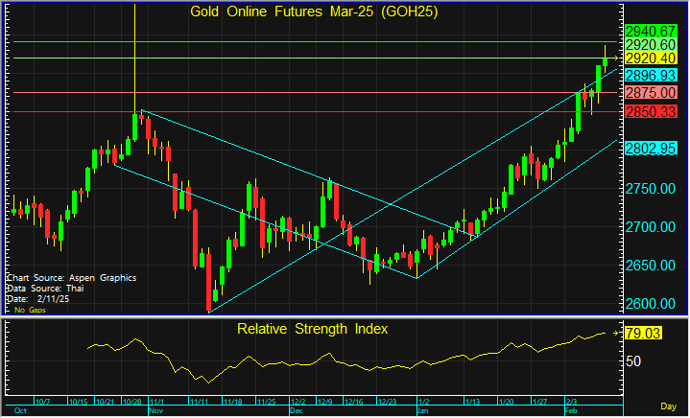 GOH25 ที่เร่งตัวขึ้น กำลังเผชิญกับแรงขายจนอาจเกิดรูปแบบแบบดาวตก (Shooting Stars) ซึ่งราคามักกลับตัวลงหลังเกิดรูปแบบดังกล่าว จึงแนะนำรอเปิด Short ที่ระดับ 2,920 ดอลลาร์ โดยมีเป้าทำกำไรที่ 2,875 ดอลลาร์ และตัดขาดทุนหากราคาทะลุระดับ 2,940 ดอลลาร์