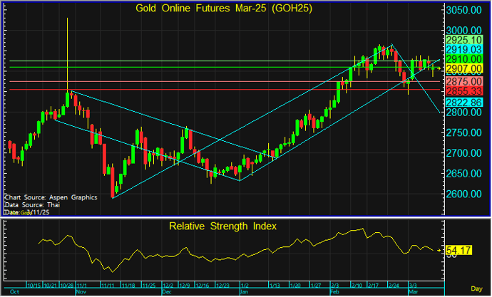 แนวต้าน : 2,910 และ 2,925 ดอลลาร์