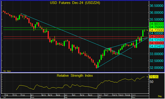 USDZ24 ยังคงเดินหน้าอ่อนค่า จากค่าเงินดอลลาร์สหรัฐฯ ที่แข็งค่าขึ้นเหนือระดับ 106 แต่หากดูประวัติย้อนหลัง จะพบว่าบริเวณนี้เป็นกรอบบนของ ค่าเงินดอลลาร์สหรัฐฯ แนะนำรอ Short สัญญา USDZ24 ที่ 34.75 บาท โดยมีเป้าหมายทำกำไรที่ 34.25 บาท และตัดขาดทุนหากทะลุระดับ 34.90 บาท