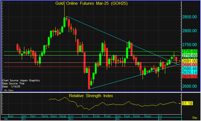 GOH25 ปรับตัวลงจากปัจจัยที่เข้ากระทบ แต่แนวรับที่ 2,685 ดอลลาร์ เป็นแนวรับสำคัญ ซึ่งอาจส่งราคากลับขึ้นไปได้อีกครั้ง จึงแนะนำรอเปิด Long สัญญา GOH25 ที่แนวรับดังกล่าว โดยมีเป้าทำกำไรที่ 2,710 ดอลลาร์ และตัดขาดทุนหากราคาทะลุระดับ 2,670 ดอลลาร์