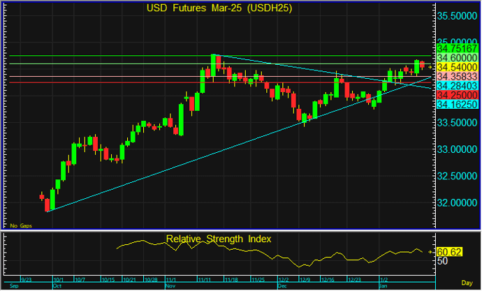 USDH25 ที่ฟื้นตัวขึ้นมา เริ่มเผชิญกับแรงต้านอีกครั้ง ระยะสั้นคาดว่าราคาปรับตัวลงทดสอบแนวรับ จึงยังแนะนำเสี่ยงเปิด Short สัญญา USDH25 ที่ 34.60 บาท โดยมีเป้าทำกำไรที่ 34.35 บาท และตัดขาดทุนหากราคาทะลุระดับ 34.75 บาท