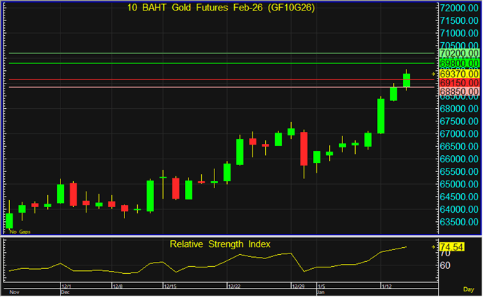 แนวรับดังกล่าว โดยมีเป้าหมายทำกำไรที่ระดับ 69,800 บาท และตัดขาดทุนหากราคาหลุดแนวรับที่ระดับ 68,850 บาทลงไป