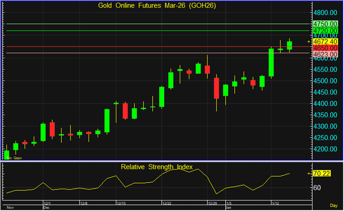 ราคา GOH26 อาจย่อตัวลงสั้นๆ ซึ่งประเมินว่าอาจสามารถฟื้นตัวขึ้นจากแนวรับที่ระดับ 4,650 ดอลลาร์ จึงแนะนำรอเปิด Long จากแนวรับดังกล่าว โดยมีเป้าหมายทำกำไรที่ระดับ 4,720 ดอลลาร์ และตัดขาดทุนหากราคาหลุดแนวรับที่ระดับ 4,623 ดอลลาร์ลงไป