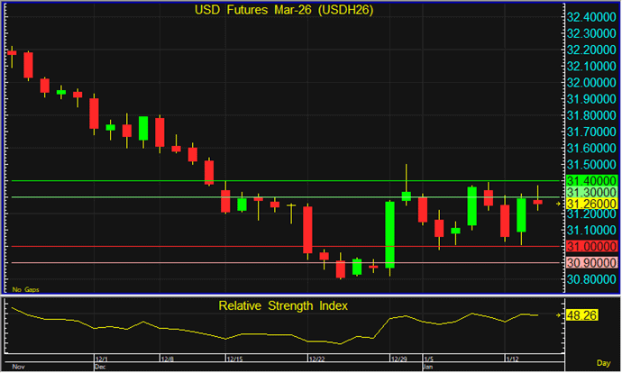 ราคา USDH26 เริ่มย่อตัวลง แต่ยังแนะนำรอเปิด Short จากแนวต้านที่ระดับ 31.30 บาท โดยมีเป้าหมายทำกำไรที่ระดับ 31.00 บาท และตัดขาดทุนหากราคาทะลุแนวต้านที่ระดับ 31.40 บาทขึ้นไป