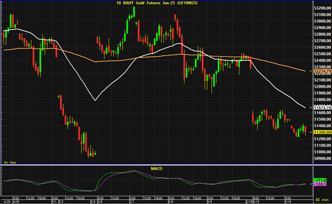 GF10M25 ที่ฟื้นตัวขึ้นมาอาจยังคงติดแนวต้าน จึงแนะนำรอเปิด Short ที่ระดับ 51,500 บาท โดยมีเป้าหมายทำกำไรที่ระดับ 50,000-50,400 บาท และตัดขาดทุนหากราคาทะลุแนวต้านที่ระดับ 51,900 บาทขึ้นไป