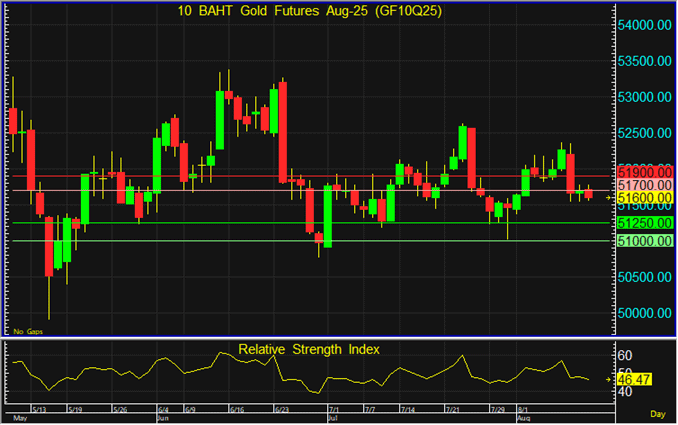 GF10Q25 ที่ฟื้นตัวขึ้นมา ยังคงติดแนวต้านสำคัญ จึงแนะนำไล่เปิด Short โดยมีเป้าหมายทำกำไรที่ระดับ 51,250 บาท และตัดขาดทุนหากราคาทะลุแนวต้านแรกที่ 51,700 บาทขึ้นไป