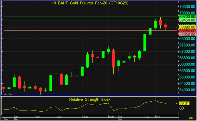 ราคา GF10G26 ยังคงซื้อขายกันอยู่บริเวณแนวรับที่ระดับ 68,850 บาท จึงแนะนำรอเปิด Long จากแนวรับดังกล่าว โดยมีเป้าทำกำไรที่ระดับ 69,450 บาท และตัดขาดทุนหากราคาหลุดแนวรับที่ระดับ 68,650 บาทลงไป