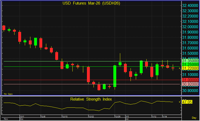 ราคา USDH26 เริ่มย่อตัวลง แต่ยังแนะนำรอเปิด Short จากแนวต้านที่ระดับ 31.25 บาท โดยมีเป้าหมายทำกำไรที่ระดับ 31.00 บาท และตัดขาดทุนหากราคาทะลุแนวต้านที่ระดับ 31.35 บาทขึ้นไป