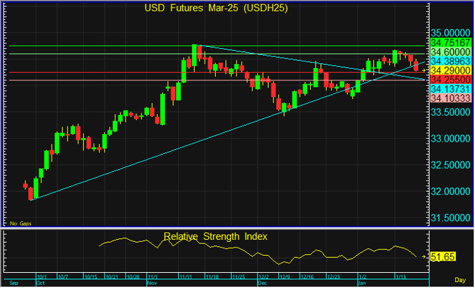 USDH25 ปรับตัวลงจากแนวโน้มที่ ธนาคารกลางสหรัฐฯ อาจกลับมาทบทวนการปรับลดดอกเบี้ยในปีนี้อีกครั้ง แต่ด้วยราคาที่เริ่มปรับตัวลงมาแล้ว จึงแนะนำใช้กลยุทธ์เชิงรับในการรอเปิด Long สัญญา USDH25 ที่ 34.25 บาท โดยมีเป้าทำกำไรที่ 34.60 บาท และตัดขาดทุนหากราคาทะลุระดับ 34.10 บาท
