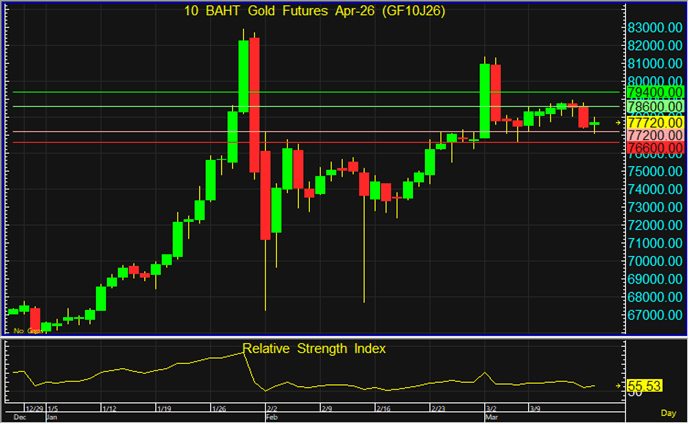 แนวต้าน : 78,600 และ 79,400 บาท
