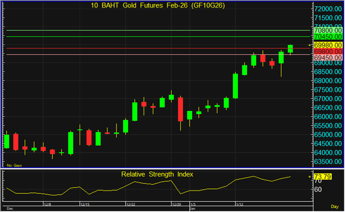 ราคา GF10G26 เริ่มทะลุแนวต้านขึ้นมา จึงกลับมาแนะนำไล่เปิด Long โดยมีเป้าทำกำไรที่ระดับ 70,450 บาท และตัดขาดทุนหากราคาหลุดแนวรับแรกที่ระดับ 69,800 บาทลงไป