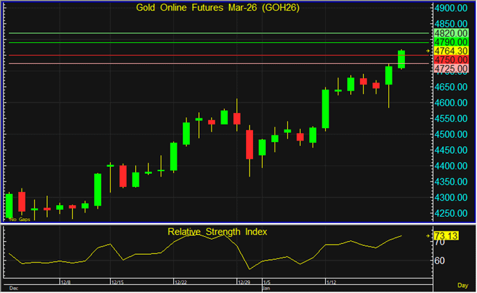 ราคา GOH26 เริ่มทะลุแนวต้านขึ้นมา จึงกลับมาแนะนำไล่เปิด Long โดยมีเป้าทำกำไรที่ระดับ 4,790 ดอลลาร์ และตัดขาดทุนหากราคาหลุดแนวรับแรกที่ระดับ 4,750 บาทลงไป