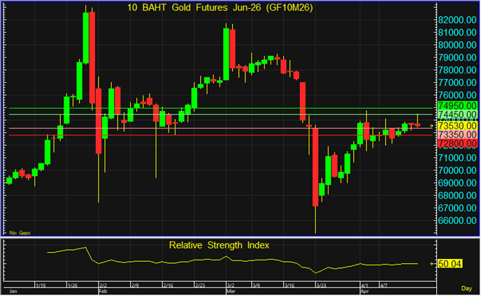 GF10J26 ยังคง Sideways แนะนำรอเปิด Long จากระดับ 73,350 บาท โดยมีเป้าหมายทำกำไรที่ระดับ 74,450 บาท และตัดขาดทุนหากราคาทะลุระดับ 72,800 บาทลงไป