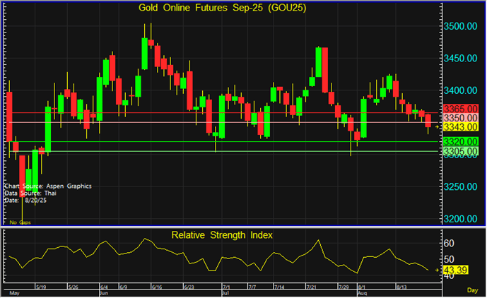 GOU25 หลุดระดับสำคัญที่ 3,350 ดอลลาร์ลงมา แนวโน้มอาจกลับสู่ขาลงอีกครั้ง จึงแนะนำไล่เปิด Short โดยมีเป้าทำกำไรที่ 3,320 ดอลลาร์ และตัดขาดทุนหากราคาทะลุแนวต้านแรกที่ระดับ 3,350 ดอลลาร์ขึ้นไป