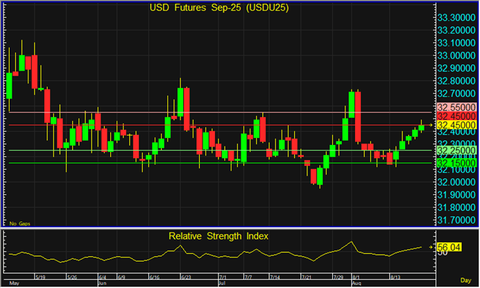 USDU25 ที่ฟื้นตัวขึ้นมา เริ่มเผชิญแรงขายเมื่อขึ้นทดสอบแนวต้าน จึงแนะนำรอเปิด Short จากระดับ 32.45 บาท โดยมีเป้าหมายทำกำไรที่ 32.25 บาท และตัดขาดทุนหากราคาทะลุแนวต้านที่ระดับ 32.55 บาทขึ้นไป