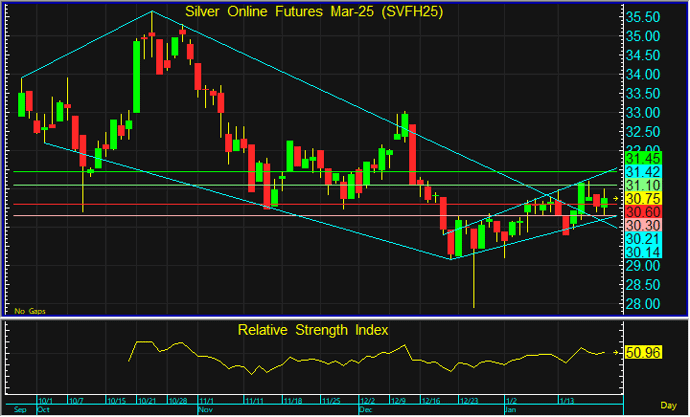 SVFH25 แม้ราคาจะยังไม่สามารถผ่านแนวต้านขึ้นไปได้ แต่ยังประเมินว่ามีแนวโน้มฟื้นตัวอยู่ แนะนำใช้กลยุทธ์เชิงรับในการรอเปิด Long สัญญา SVFH25 ที่ 30.60 ดอลลาร์ โดยมีเป้าทำกำไรที่ 31.10 ดอลลาร์ และตัดขาดทุนหากราคาหลุดระดับ 30.30 ดอลลาร์