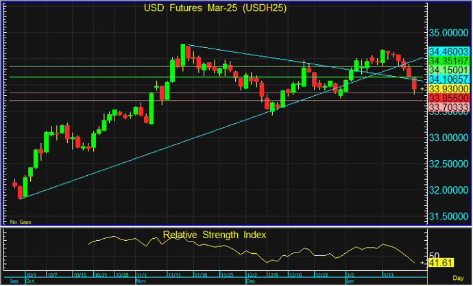 USDH25 มีสัญญาณการฟื้นตัวขึ้นอีกครั้ง หลังลงทดสอบแนวรับสำคัญที่ 33.85 บาท จึงแนะนำเสี่ยงไล่ Long สัญญา USDH25 โดยมีเป้าทำกำไรที่ 34.15 บาท และตัดขาดทุนหากราคาทะลุระดับ 33.70 บาท