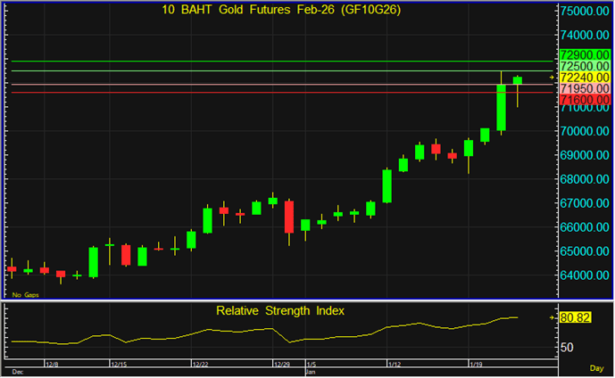 แนวต้าน : 72,500 และ 72,900 บาท