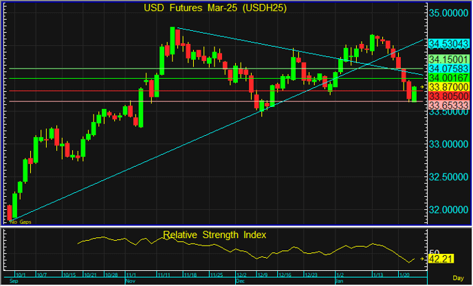 USDH25 ที่ปรับตัวลงมา มีแรงซื้อกลับจากแนวรับที่บริเวณ 33.65 บาท แต่แนวโน้มยังไม่ชัดเจน จึงยังคงแนะนำ Wait and See แต่สำหรับนักลงทุนที่รับความเสี่ยงได้ อาจไล่เปิด Long สัญญา USDH25 ตามแนวโน้มขาขึ้น โดยมีเป้าทำกำไรที่ 34.00 บาท และตัดขาดทุนหากราคาทะลุระดับ 33.80 บาท