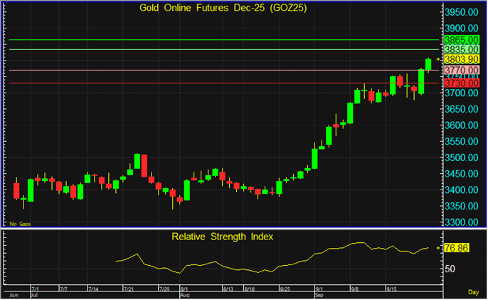 ราคา GOZ25 ยังคงมีแนวโน้มปรับตัวขึ้นต่อ จึงแนะนำไล่เปิด Long โดยมีเป้าทำกำไรที่ระดับ 3,835 ดอลลาร์ และตัดขาดทุนหากราคาทะลุ