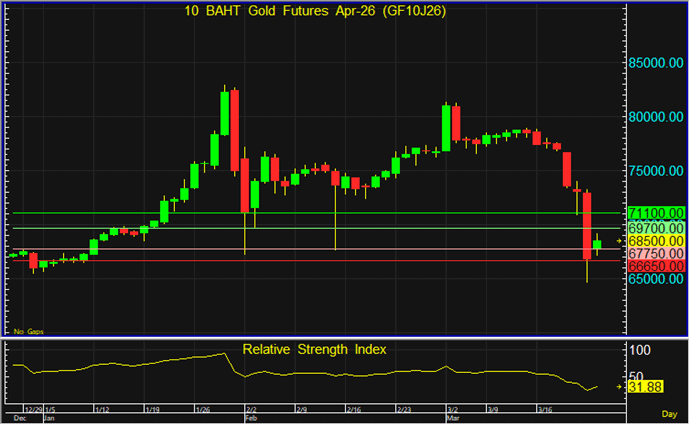GF10J26 แนะนำรอเปิด Long จากระดับ 67,750 บาท โดยมีเป้าหมายทำกำไรที่ระดับ 69,700 บาท และตัดขาดทุนหากราคาทะลุระดับ 66,650 บาทลงไป