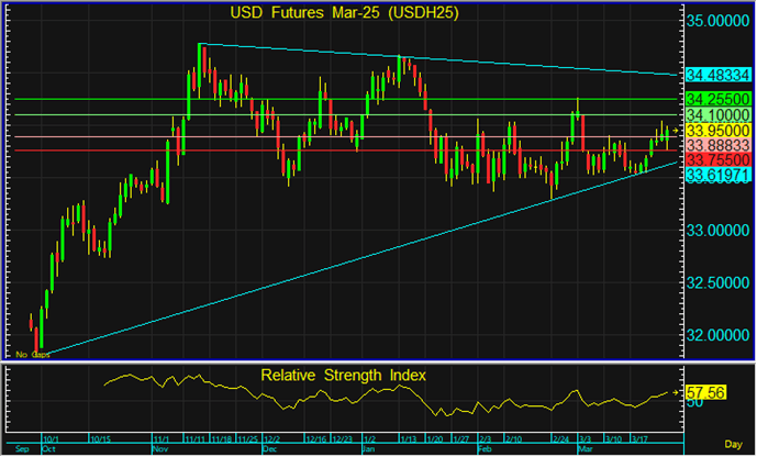 USDH25 ที่พักฐานลงมา ประเมินว่าเป็นเพียงการพักฐานในระยะสั้น โดยแนะนำรอเปิด Long ที่แนวรับสำคัญที่ระดับ 33.88 บาท โดยมีเป้าทำกำไรที่ระดับ 34.10 บาท และตัดขาดทุนหากราคาทะลุแนวรับที่ระดับ 33.75 บาทลงไป