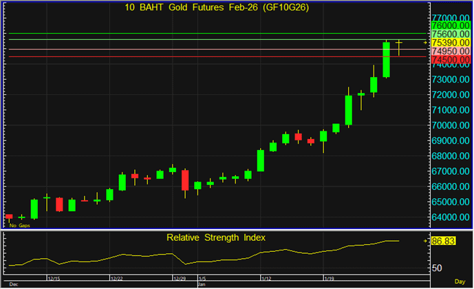 แนวต้าน : 75,600 และ 76,000 บาท