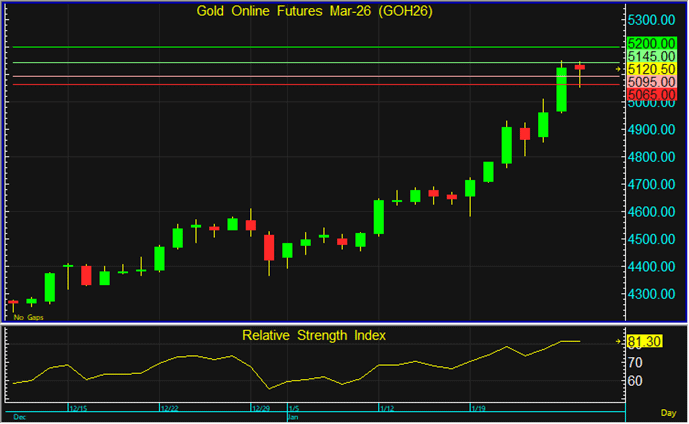 ราคา GOH26 เริ่มชะลอตัวลงจากแนวต้าน จึงกลับมาแนะนำไล่เปิด Short โดยมีเป้าหมายทำกำไรสั้นๆที่ระดับ 5,095 ดอลลาร์ และตัดขาดทุนหากราคาทะลุแนวต้านแรกที่ระดับ 5,145 ดอลลาร์