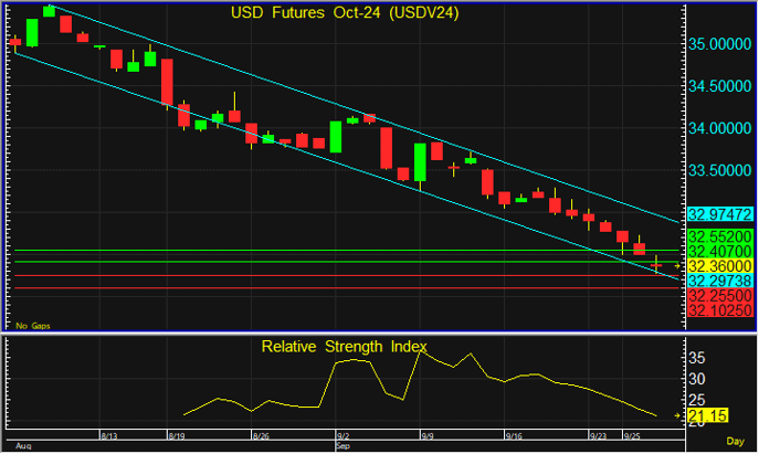 USDV24 ปรับตัวลงเร็วและแรงกว่าที่เคยประเมิน แต่ราคาอาจดีดตัวสั้นๆ ก่อนจะปรับตัวลงต่อจากแนวโน้มการลดดอกเบี้ยของ Fed แนะนำรอ Short สัญญา USDV24 ที่ 32.40-32.45 บาท โดยมีเป้าหมายทำกำไรที่ 32.25 บาท และตัดขาดทุนหากทะลุระดับ 32.55 บาท