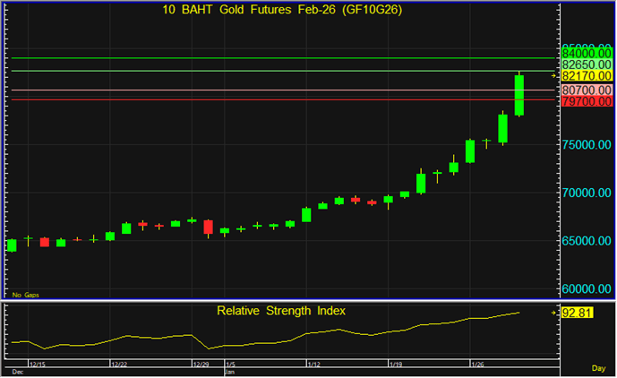 ราคาทองโลกเริ่มย่อตัวลง หลังขึ้นทำรูปแบบ Double Top จากแนวต้าน จึงแนะนำรอเปิด Long จากแนวรับที่ระดับ 80,700 บาท โดยมีเป้าหมายทำกำไรที่ระดับ 82,650 บาท และตัดขาดทุนหากราคาหลุดแนวรับที่ระดับ 79,700 บาทลงไป